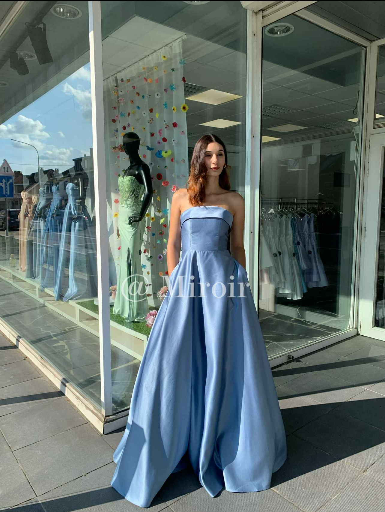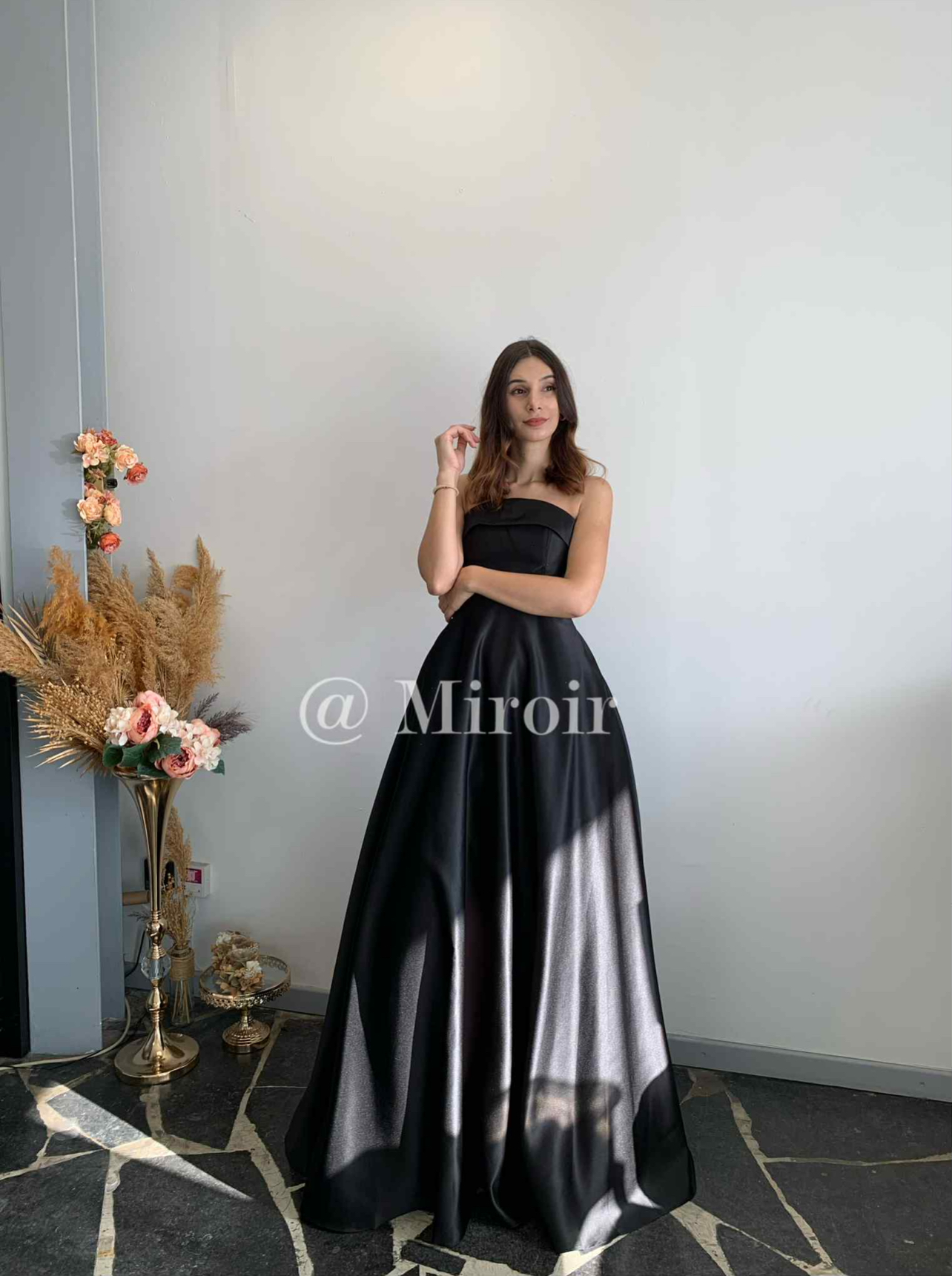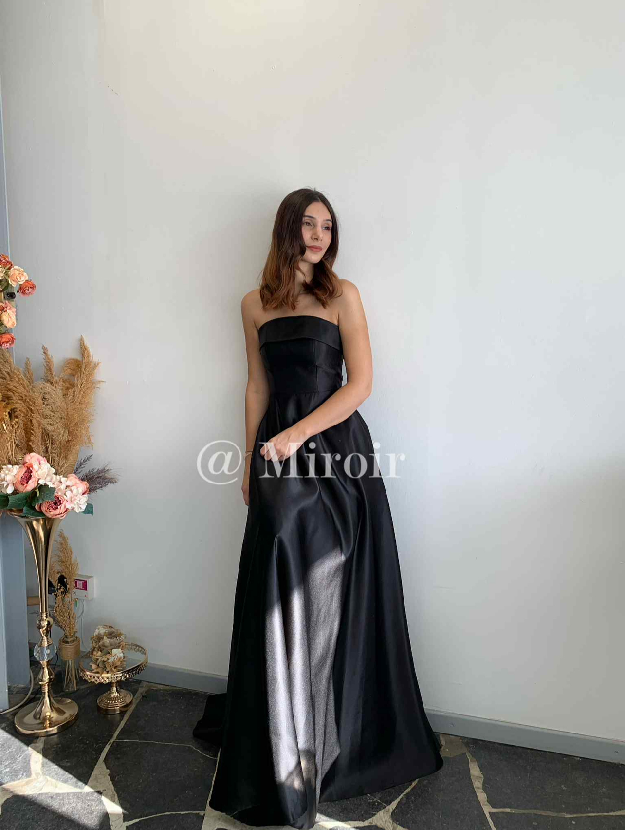 - Robe bustier en satin avec des poches