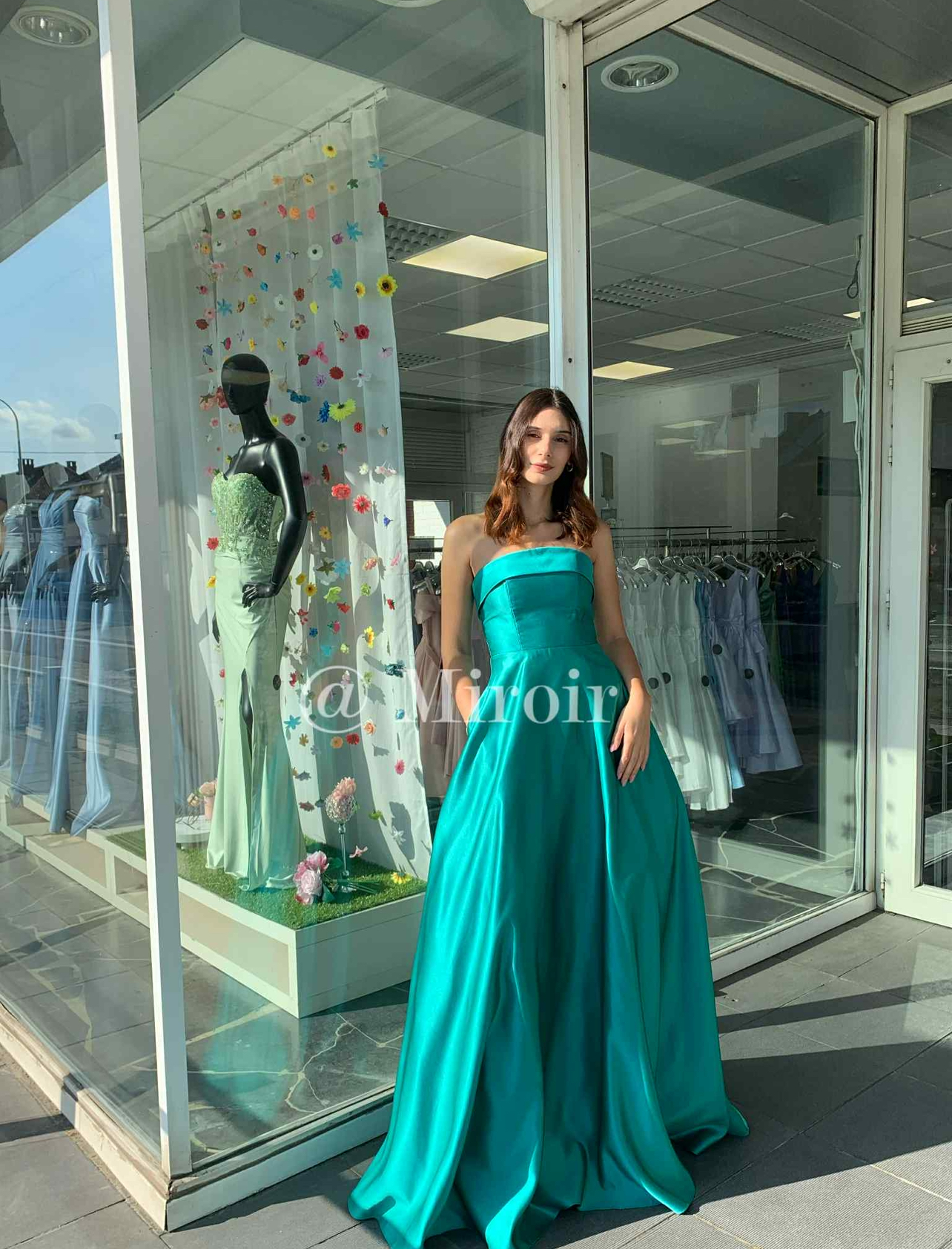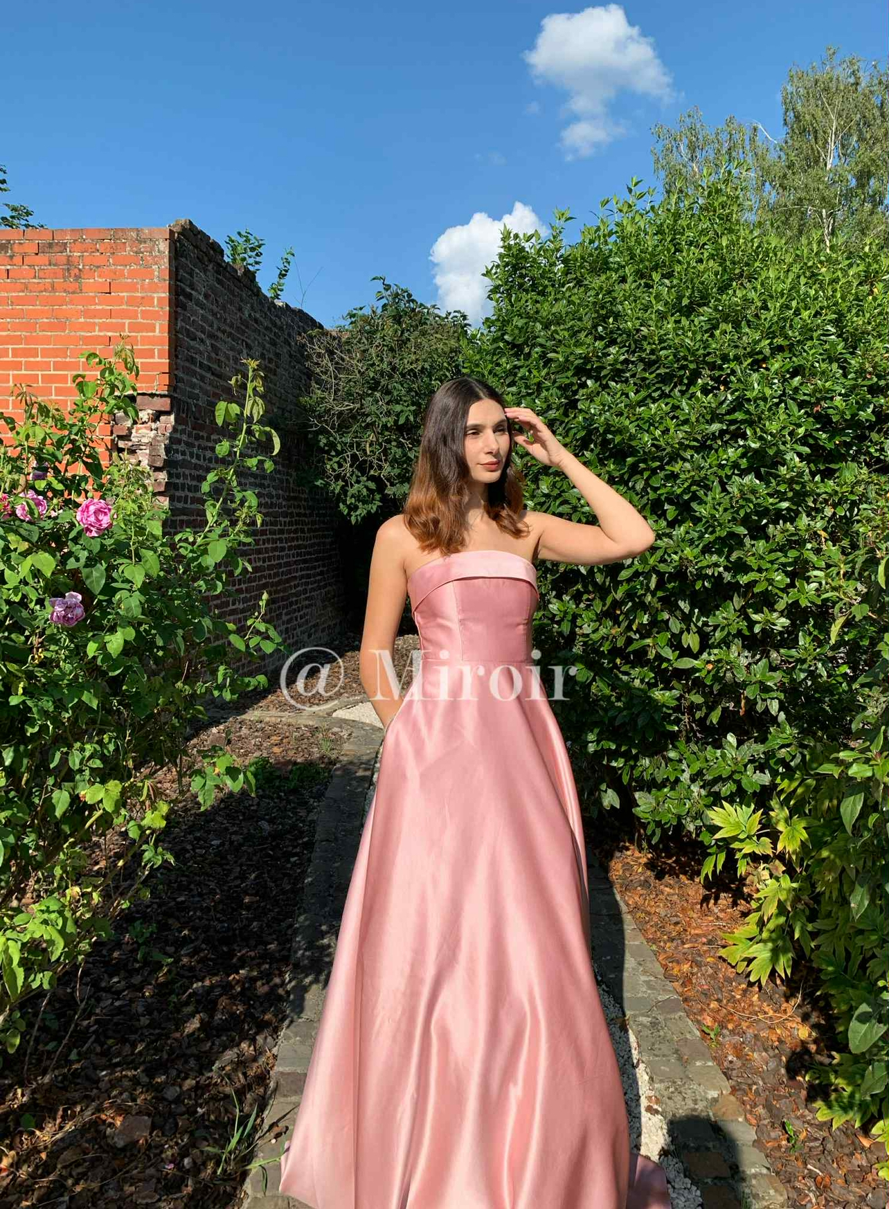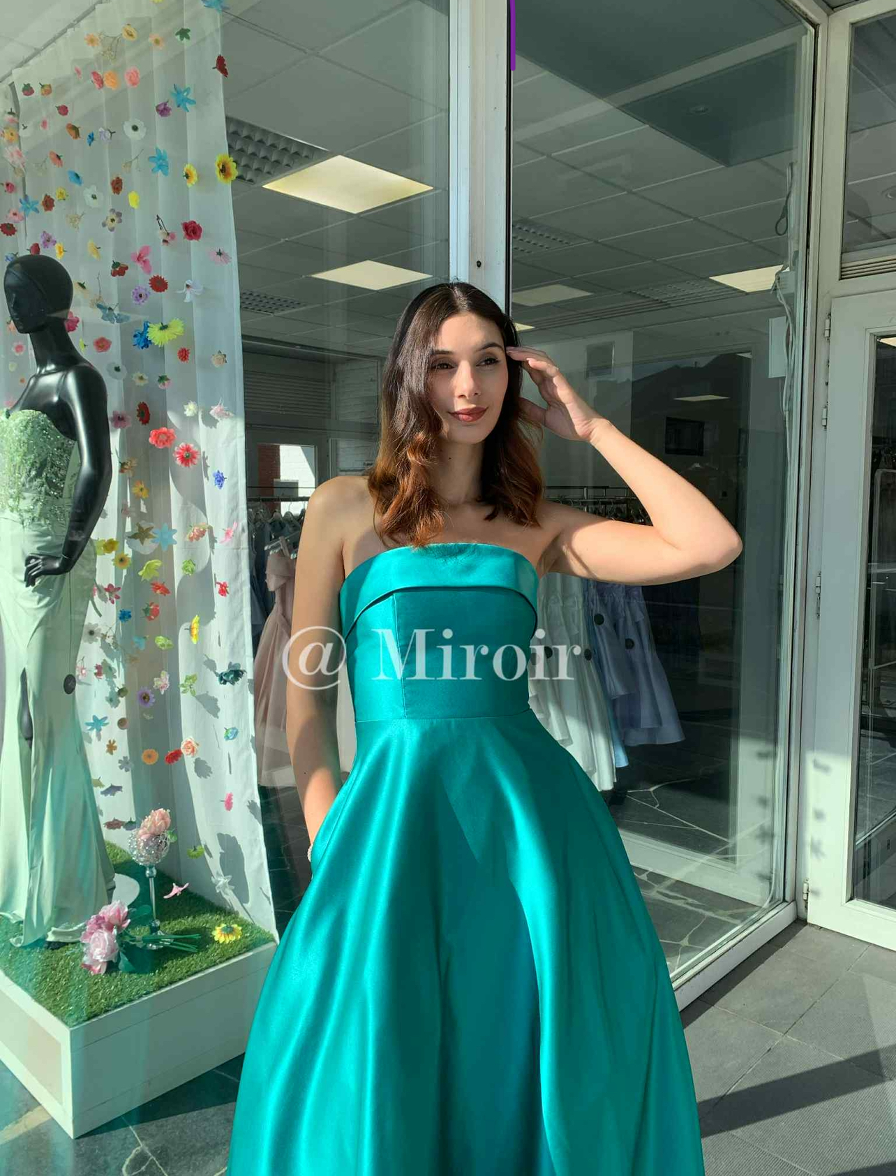 - Robe bustier en satin avec des poches