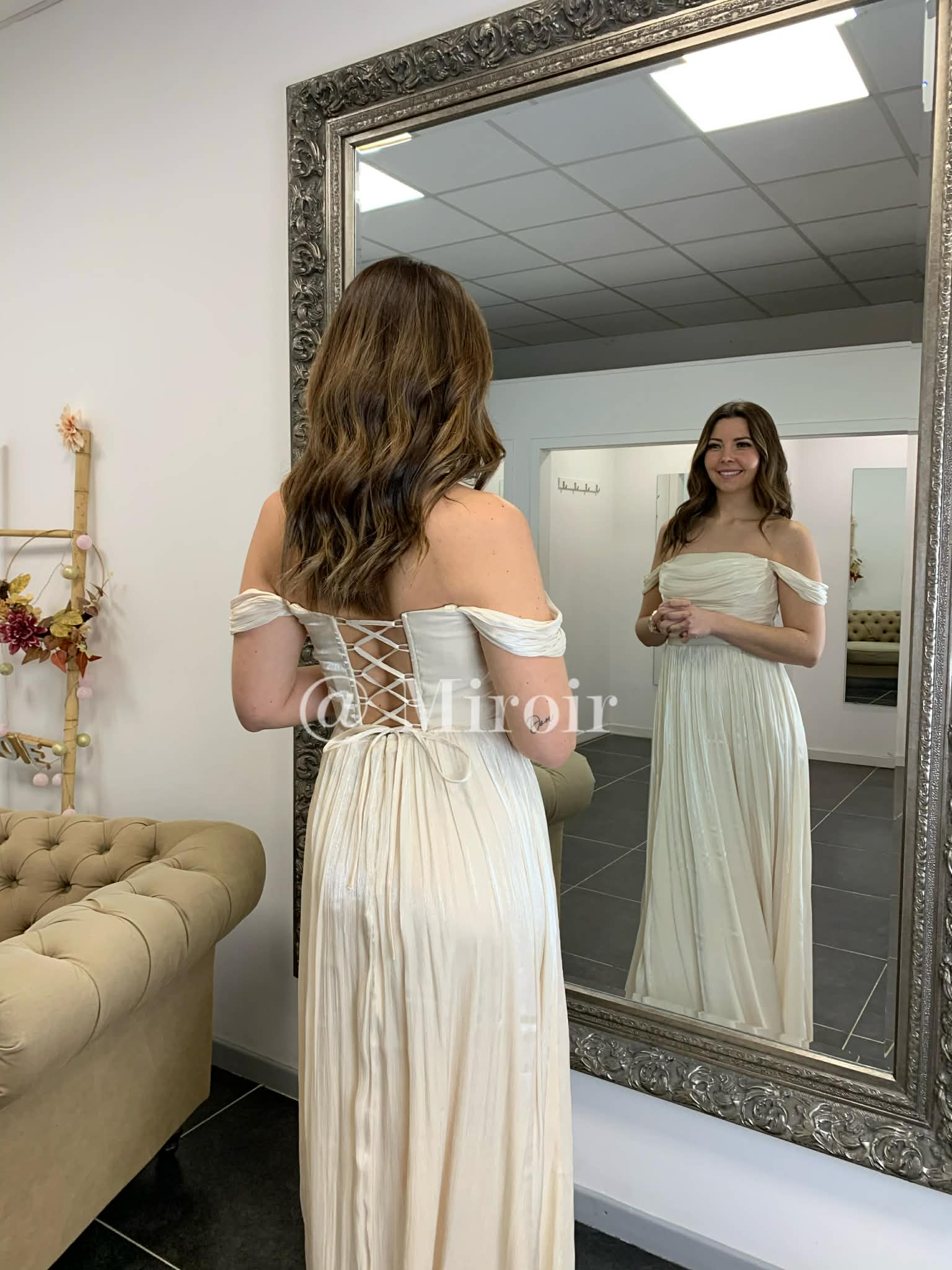 - Robe de cérémonie col bateau dos lacé