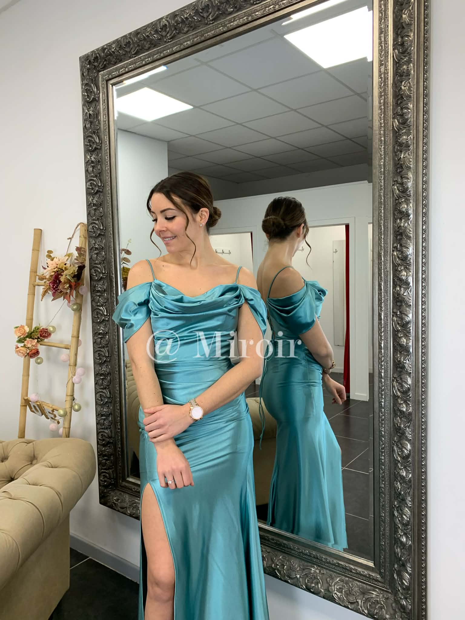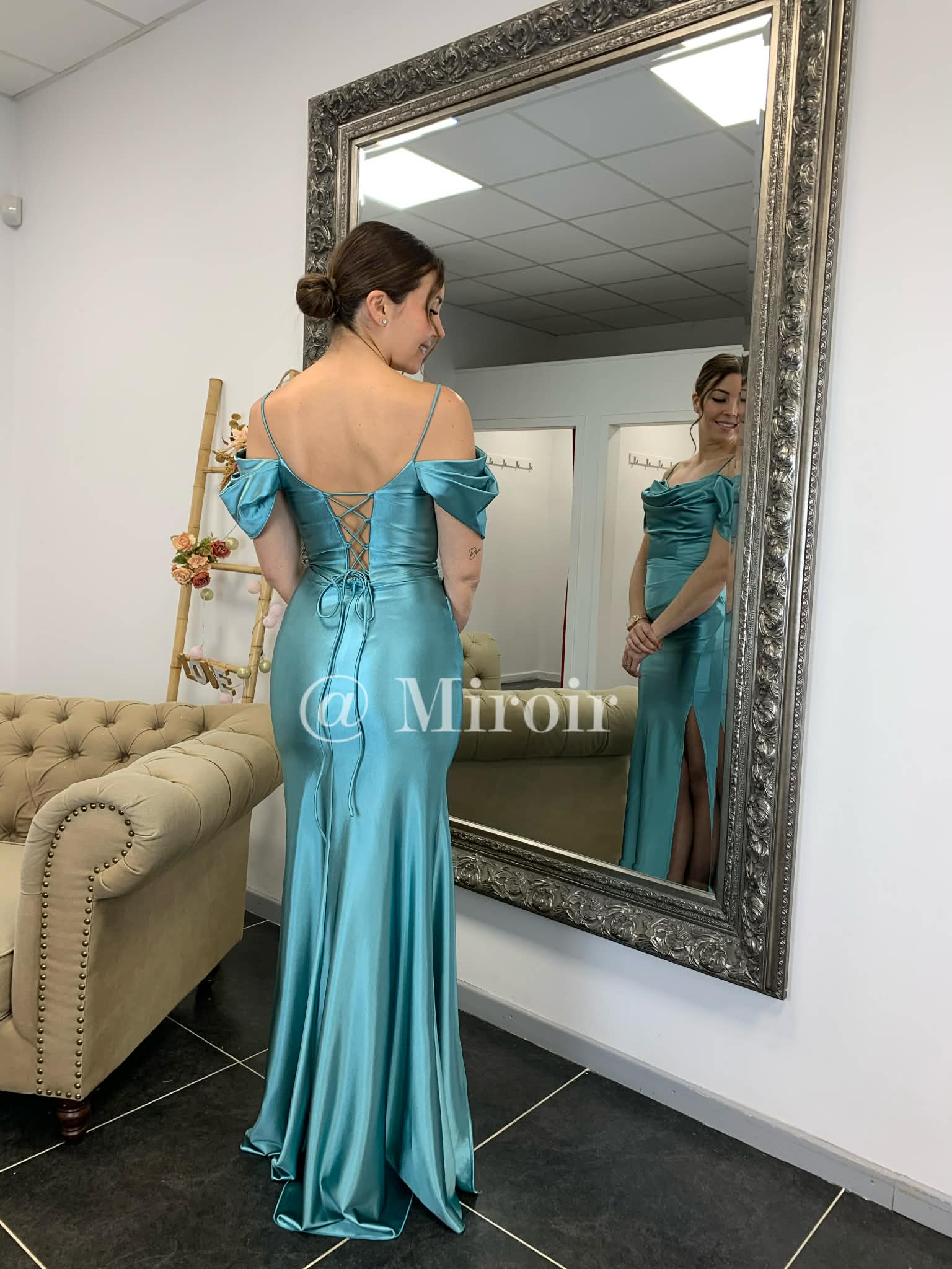 - Robe de cérémonie col bateau dos lacé