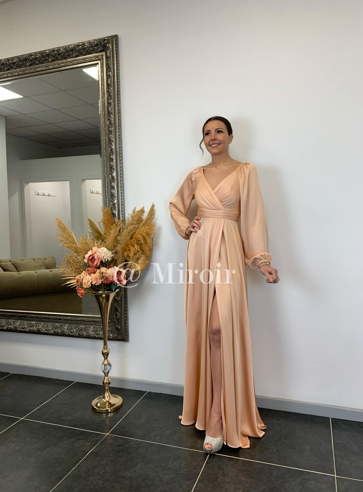 - Robe de cérémonie en satin avec des manches